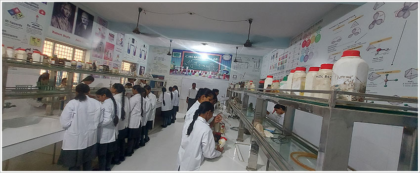 The school maintains well equipped chemistry lab. There are various chemicals in chemistry lab. Every point is explained to the students very deeply so that they can fight board and competition examinations with a great confidence.