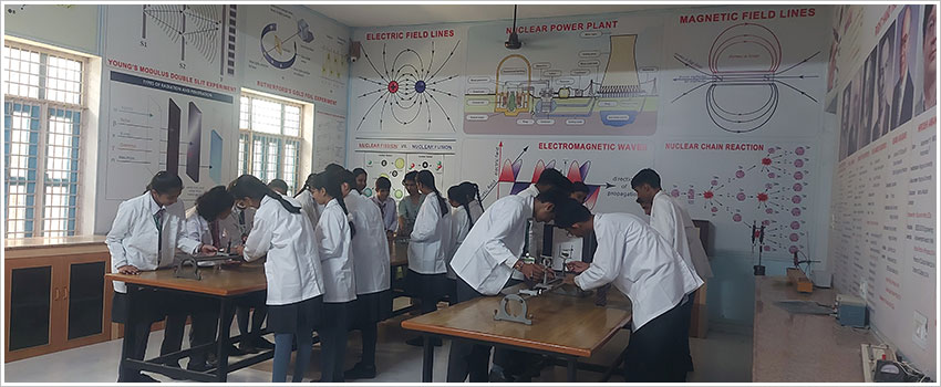 The school maintains well equipped Physics lab which is also designed to take care of the needs of the students for the Board exams. Experiments in these labs are explained to and done by the students, with care given to intricate details of each of them, so that once imbibed, the details remain in the young minds future times.